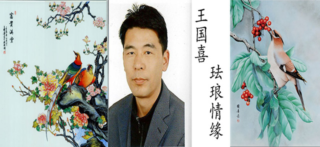 王国喜,笔名:沧海客,系江西省工艺美术师,江西省工艺美术家,市非物质文化遗产传承人,景德镇市陶瓷艺术... 查看详情>> 珐琅绝艺,盛世再现——王国喜大师珐琅彩艺 在创作和试验中的王国喜 2013景德镇瓷博会新展馆正式交付使用 查看更多>> 作品展示 更多> 霁彩珐琅 霁彩珐琅 霁彩珐琅 霁彩珐琅 霁彩珐琅 霁彩珐琅 荣誉证书 更多> 目录 毕业证书 个人成就 个人成就 个人成就 个人成就 社会活动 更多> 名人合影 名人合影 名人合影